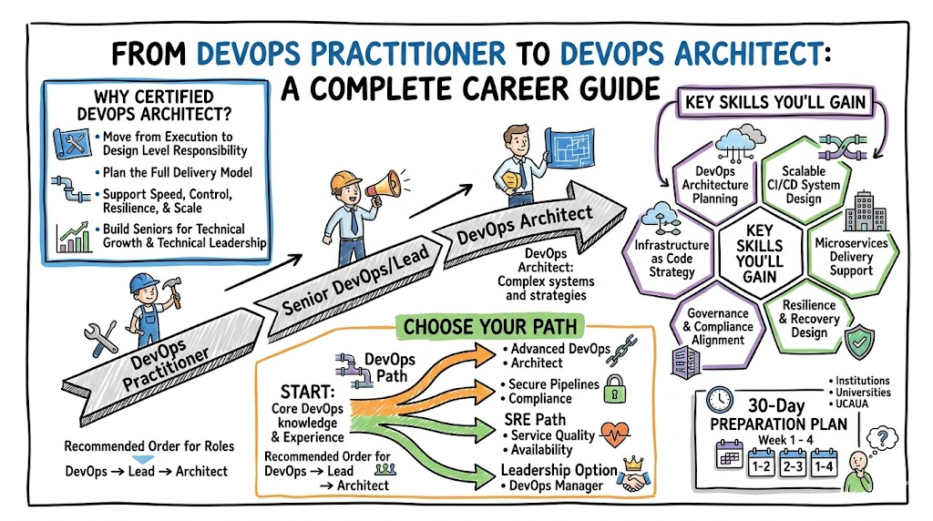 The DevOps Certified Professional (DCP) is a rigorous validation of end-to-end engineering proficiency. It covers the cultural philosophy of DevOps along with the high-level technical implementation of CI/CD, Infrastructure as Code (IaC), and Observability. It acts as the definitive bridge between being a “Junior Developer” and becoming a “Principal Platform Engineer.”